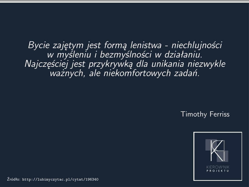 agile biznes brak chęci Brian Tracy cel cele cykl życia projektu cytat czas definicja efektywność kaizen Kanban karta projektu kierownik projektu kierownik_projektu komunikacja konsultacje monitorowanie motywacja narzędzia nauka organizacja planowanie pmart PMBoK porady praca priorytety projekt recenzja SCRUM studia sukces szkolenie wskazówka wskazówki współpraca Zarządzanie zarządzanie czasem zarządzanie portfelem projektów zarządzanie pracą zarządzanie projektami zarządzanie zadaniami zespół