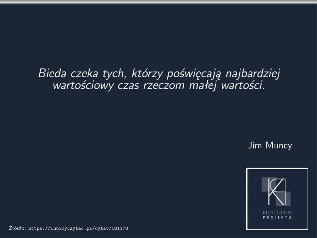 agile biznes brak chęci Brian Tracy cel cele cykl życia projektu cytat czas definicja efektywność kaizen Kanban karta projektu kierownik projektu kierownik_projektu komunikacja konsultacje monitorowanie motywacja narzędzia nauka organizacja planowanie pmart PMBoK porady praca priorytety projekt recenzja SCRUM studia sukces szkolenie wskazówka wskazówki współpraca Zarządzanie zarządzanie czasem zarządzanie portfelem projektów zarządzanie pracą zarządzanie projektami zarządzanie zadaniami zespół